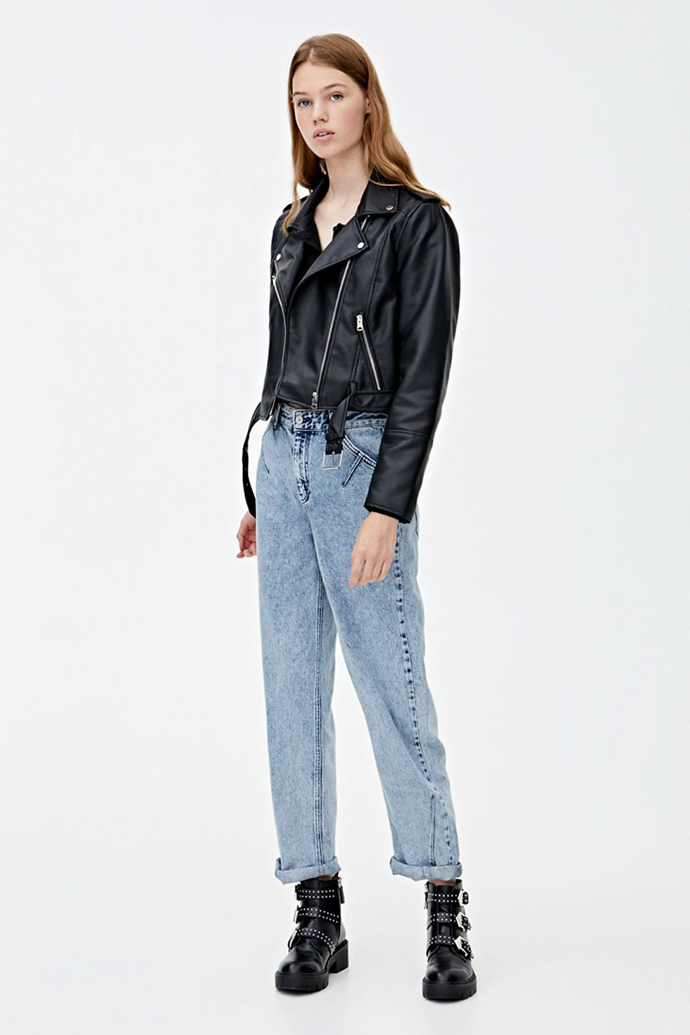 Women's Black Leather Look Biker Jacket
